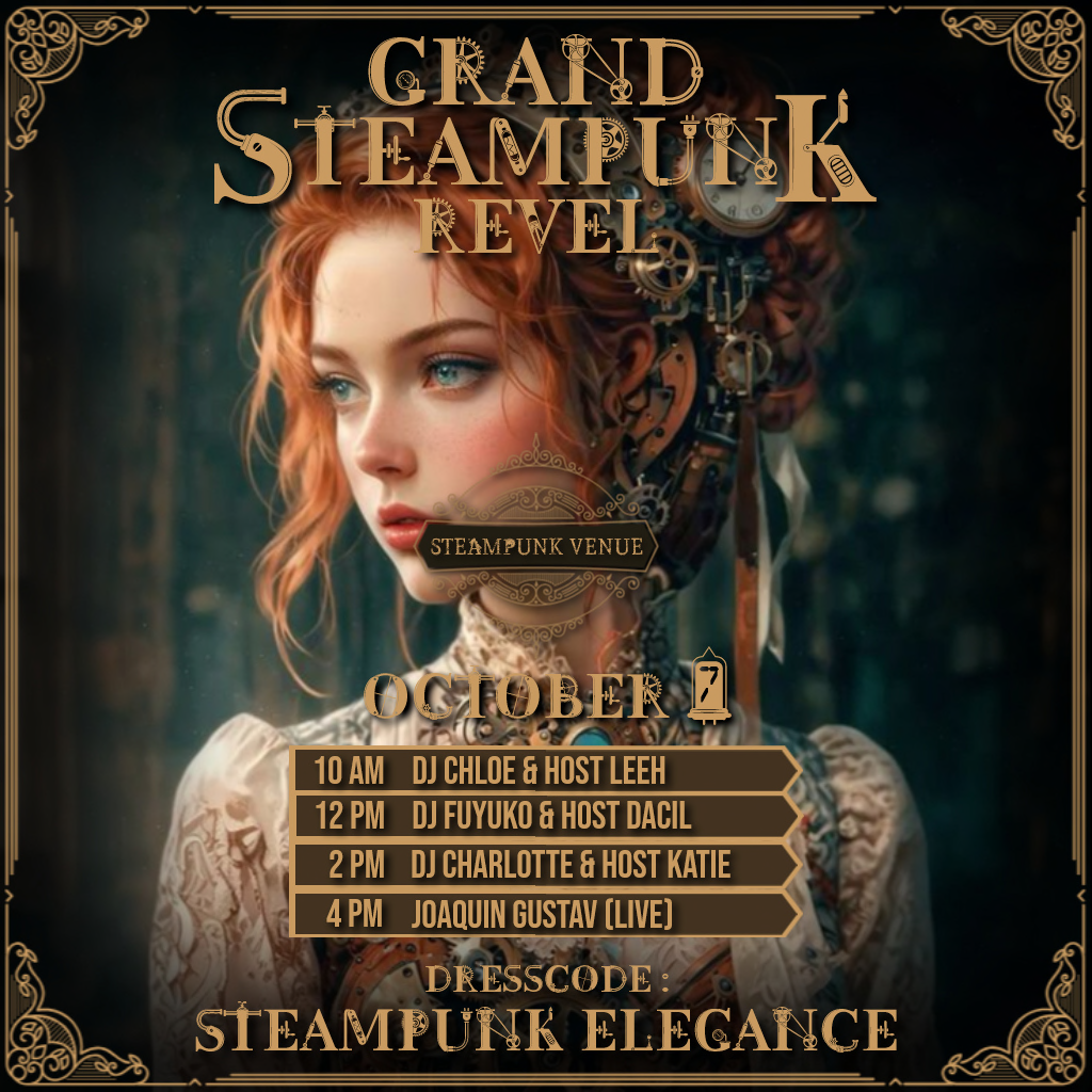 2 PM SLT: DJ Charlotte (Charlotte Littlepaws) returns, hosted by Katie, delivering the perfect mix of high-class swing and industrial grace.