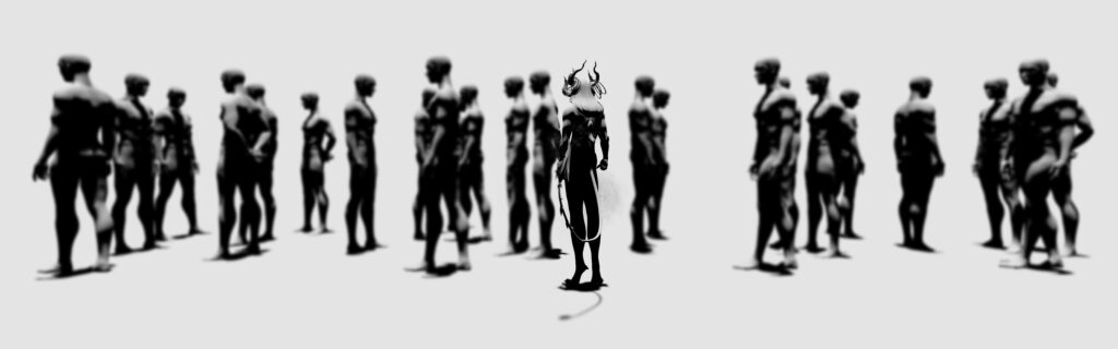 Violet: Many artists see their avatar as an extension of their artistic identity. Your avatar is quite captivating, a mix of demon and celestial. How does your avatar embody your artistic vision or inner world?